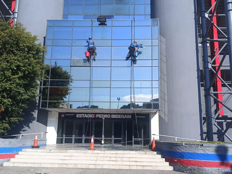 Limpieza de vidrios en altura. Dejamos sus vidrios impecables con limpieza profesional en altura, ya sea para obra finalizada o mantenimiento periódico.