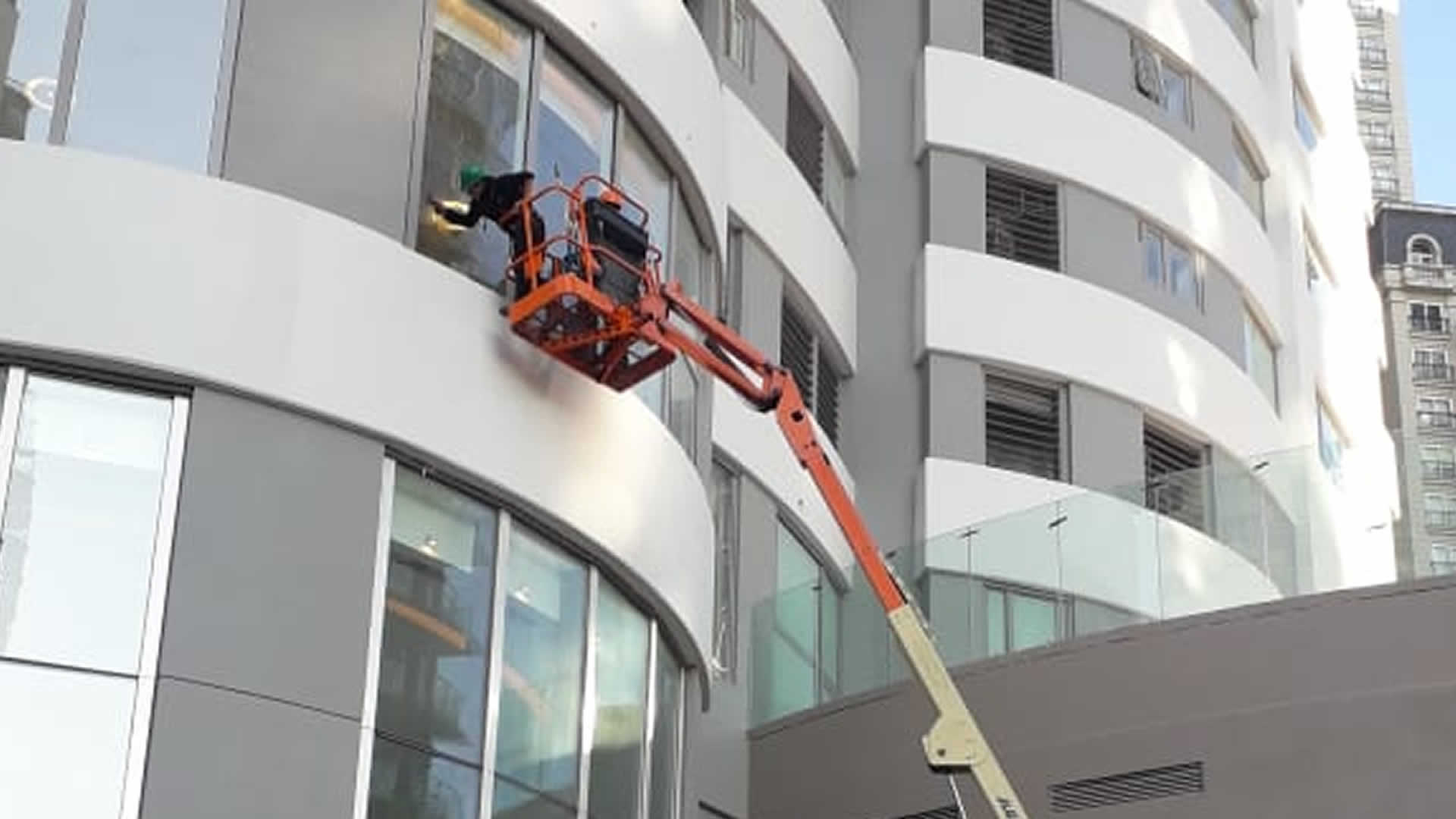 Limpieza de vidrios en altura. Dejamos sus vidrios impecables con limpieza profesional en altura, ya sea para obra finalizada o mantenimiento periódico.