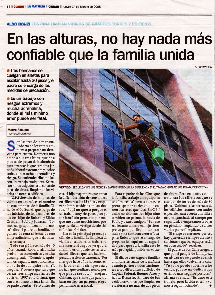 C.P.J Servicio de limpieza de vidrios en altura es el nombre de esta empresa familiar que surge en Aldo Bonzi. Roberto, el padre, junto con sus hijos Christian, Pablo y Jonathan, han construido este emprendimiento con esfuerzo y unidad.